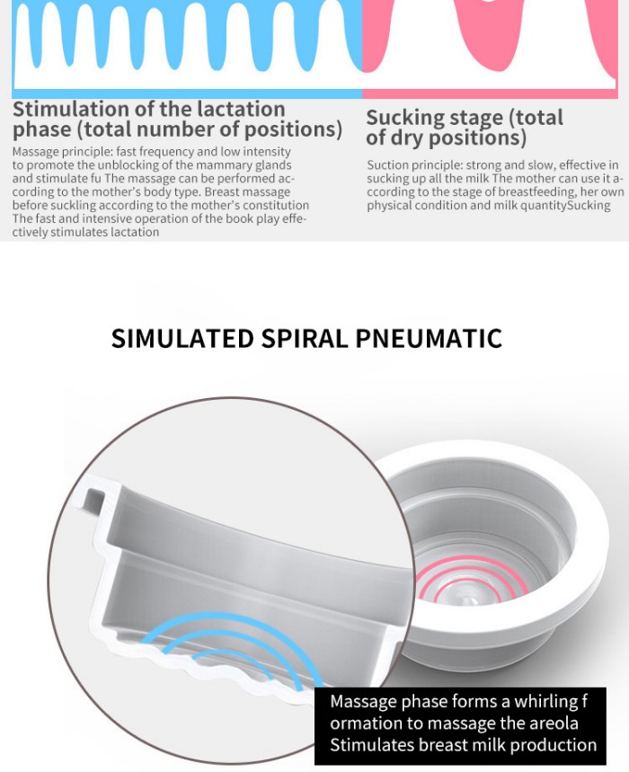 De kleine ronde enkelzijdige elektrische borstkolf van onze fabriek beschikt over drie handige instellingen voor gebruiksgemak: ten eerste een massagemodus voor het zachtjes op gang brengen van de melkproductie en het voorbereiden op het afkolven; vervolgens de pompmodus voor snelle, effectieve afkolven met minimale inspanning; en tot slot een zuigmodus die de zuigkracht en het zuigritme van uw baby nabootst, waardoor u hetzelfde comfortabele gevoel krijgt als borstvoeding.