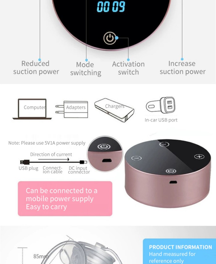 Hij wordt geleverd met een ingebouwde batterij van 1500 mAh die na één keer opladen twee uur meegaat, waardoor hij betrouwbaar is, of u hem nu thuis of onderweg meeneemt, zonder dat u hem voortdurend hoeft op te laden. Wilt u één kant of beide pompen? Het is allebei! Enkelzijdig pompen is ideaal voor regelmatig gebruik; Dankzij dubbelzijdig afkolven kun je aan beide kanten tegelijk werken, wat veel efficiënter is en perfect voor moeders met een hoge melkproductie of moeders die haast hebben.