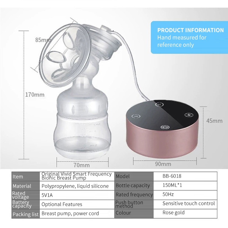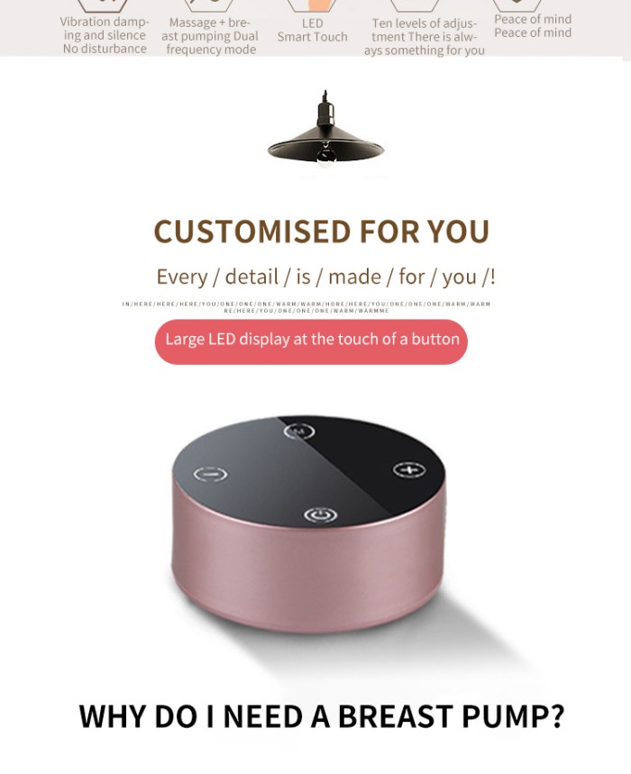 Wij zijn een professionele fabrikant die gespecialiseerd is in kleine apparaten voor moeders en kinderen. Wij streven ernaar een reeks veilige en betrouwbare hulpmiddelen voor moeders en kinderen te ontwerpen, ontwikkelen en produceren. Deze kleine ronde enkelzijdige elektrische borstkolf beschikt over drie modi: massage, kolven en bionisch. Het pakt borstvoedingsproblemen aan voor moeders na de bevalling en kan worden omgeschakeld tussen enkelzijdige en dubbelzijdige modi voor een betere afkolfefficiëntie.